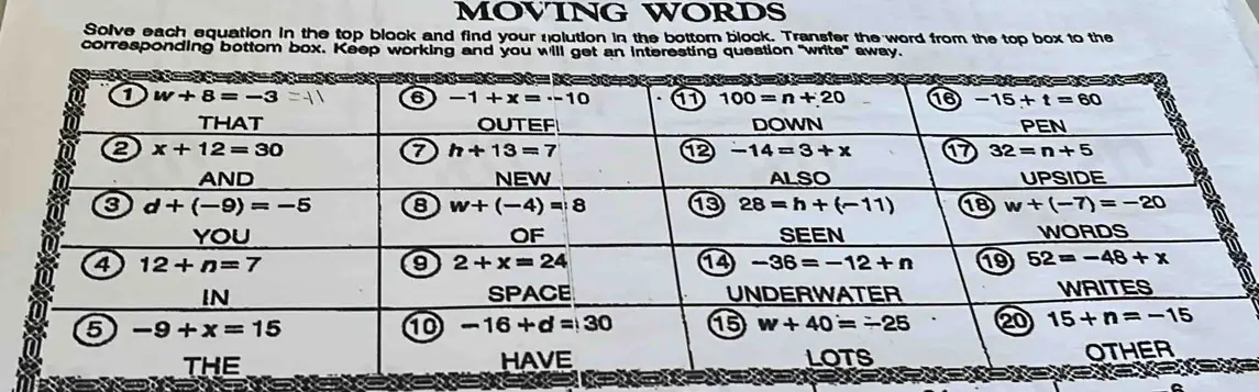 Solving Equations ( Moving Words ) Math 2P Worksheets Library