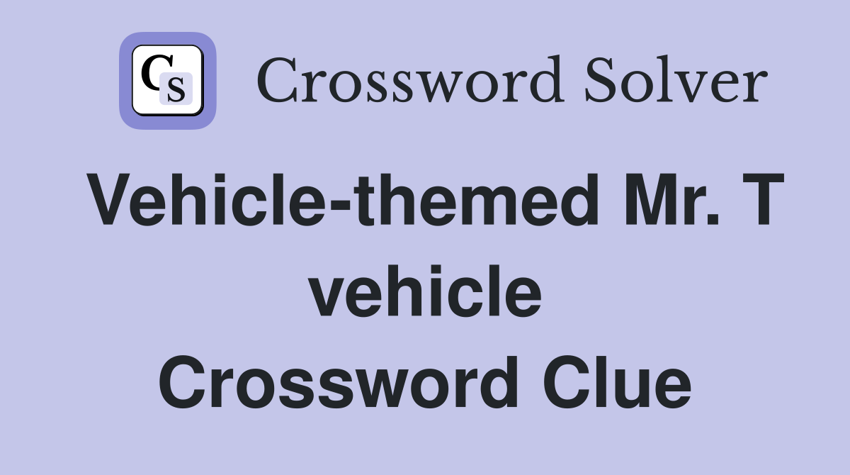 Vehicle themed Mr T vehicle Crossword Clue Answers Crossword Solver