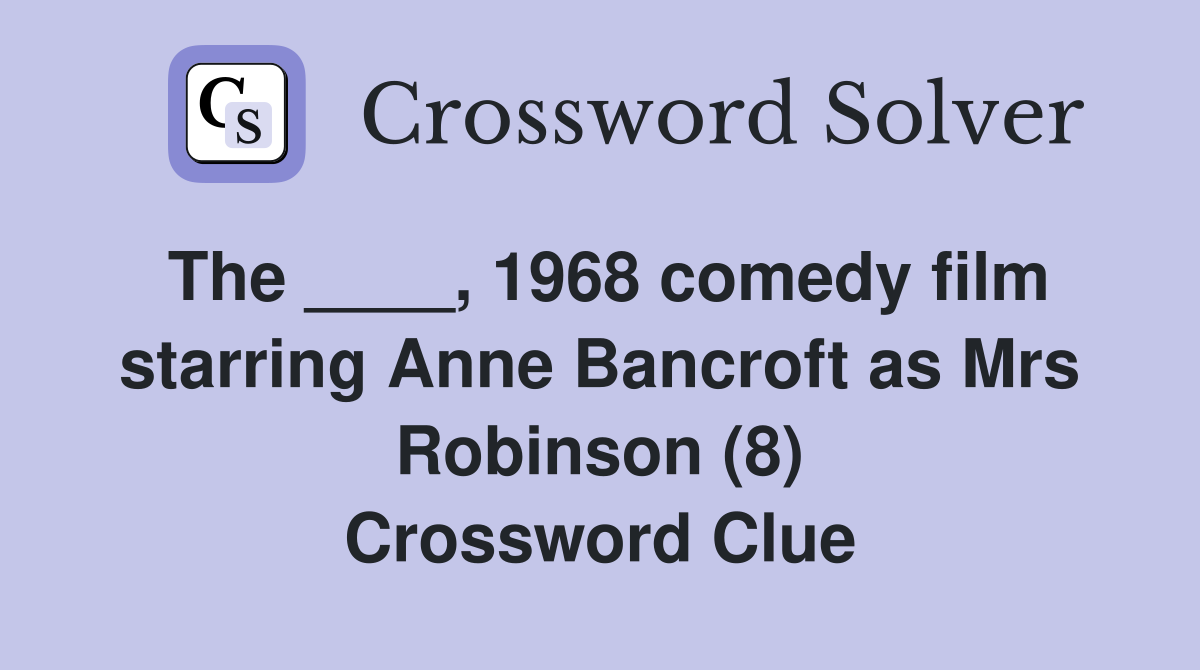 The 1968 comedy film starring Anne Bancroft as Mrs Robinson (8