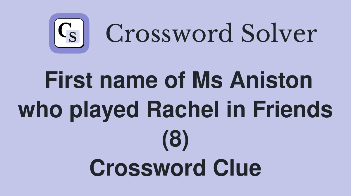 First name of Ms Aniston who played Rachel in Friends (8) Crossword