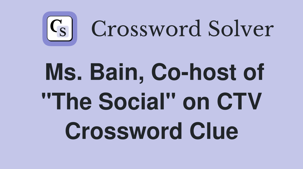 Ms Bain Co host of quot The Social quot on CTV Crossword Clue Answers