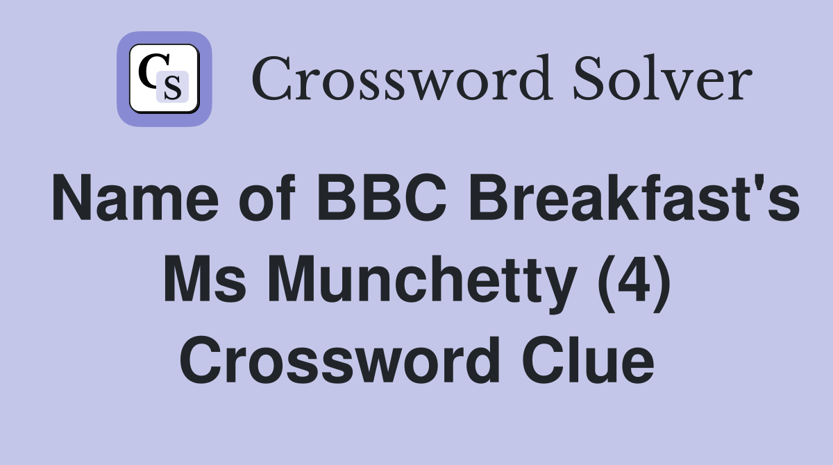 Name of BBC Breakfast #39 s Ms Munchetty (4) Crossword Clue Answers