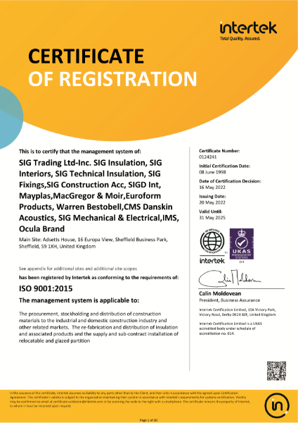 SIG ISO 9001 certificate to May 2025 CMS Danskin Acoustics NBS Source