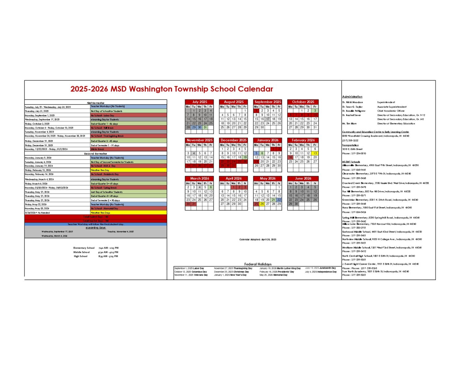 MSD Washington Township School Calendar 25 26 Revised PDF EduCounty