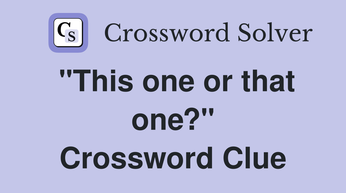 quot This one or that one? quot Crossword Clue Answers Crossword Solver