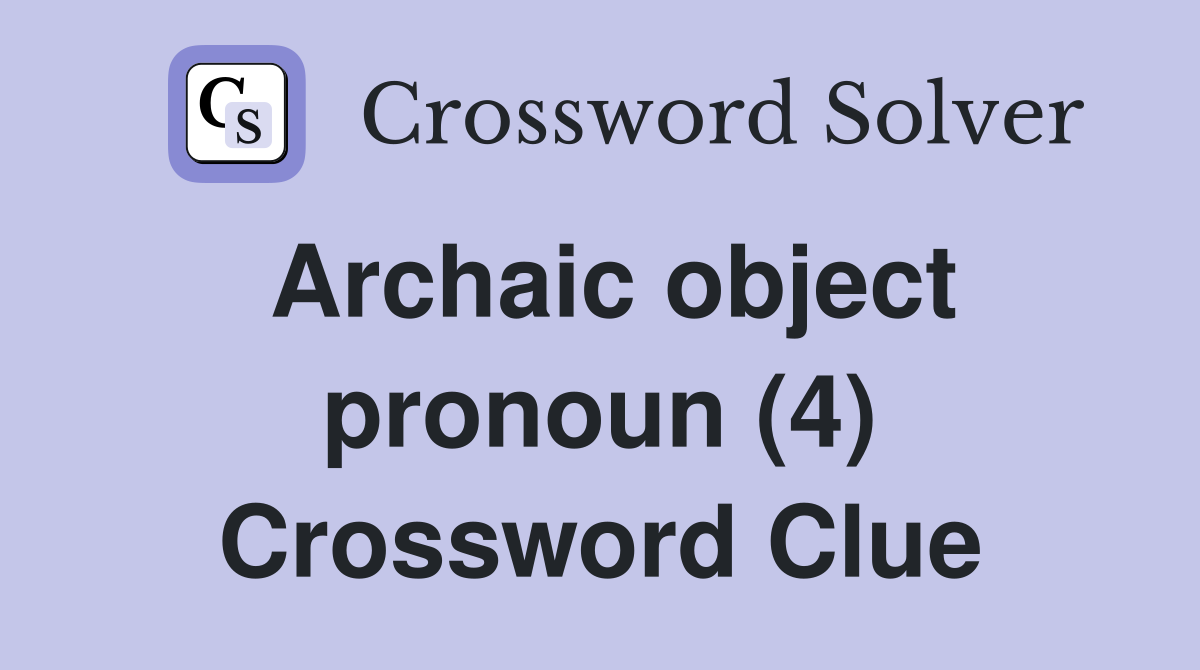 Archaic object pronoun (4) Crossword Clue Answers Crossword Solver