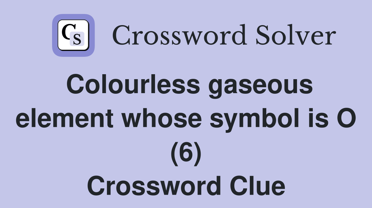 Colourless gaseous element whose symbol is O (6) Crossword Clue