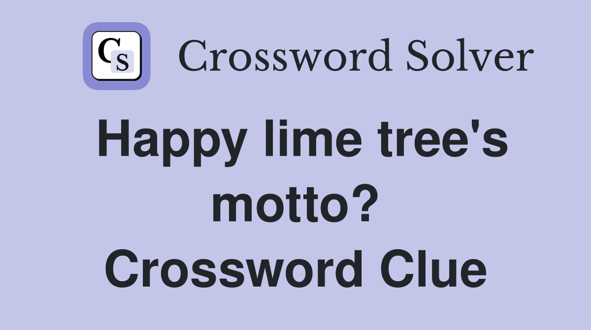 Happy lime tree #39 s motto? Crossword Clue Answers Crossword Solver