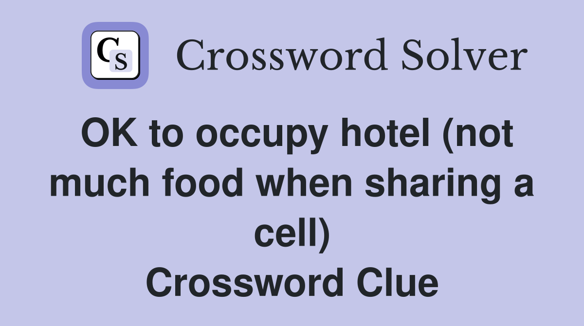 OK to occupy hotel (not much food when sharing a cell) Crossword Clue
