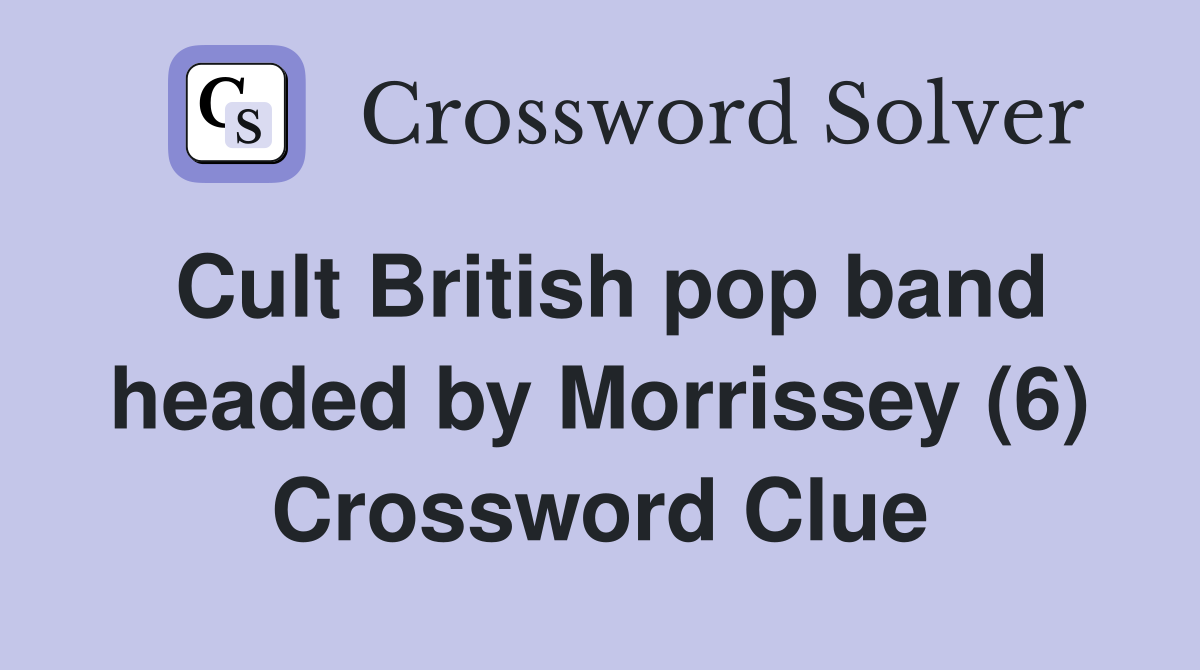 Cult British pop band headed by Morrissey (6) Crossword Clue Answers