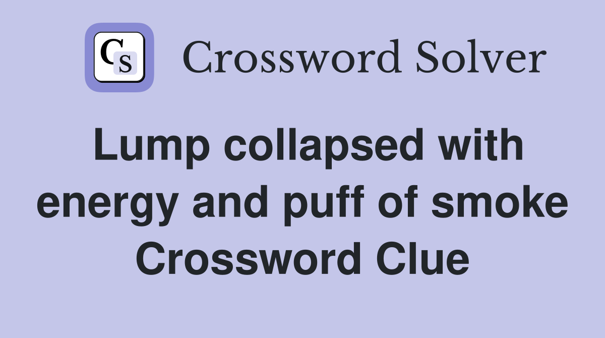 Lump collapsed with energy and puff of smoke Crossword Clue Answers