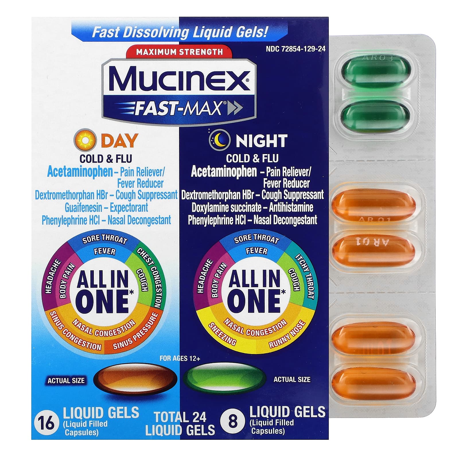 Maximum Strength Mucinex Fast Max Day Night Cold Flu Relief Combo