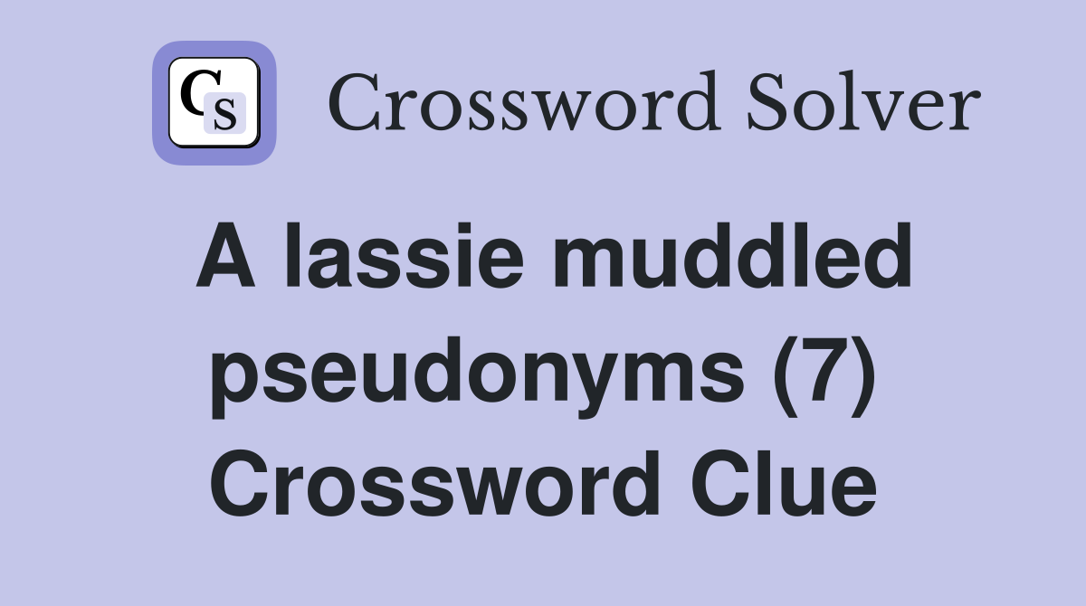 A lassie muddled pseudonyms (7) Crossword Clue Answers Crossword Solver