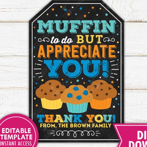 Muffin to Do but Appreciate You Printable Muffin Gift Tag Instant