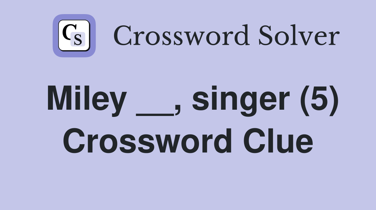 Miley singer (5) Crossword Clue Answers Crossword Solver