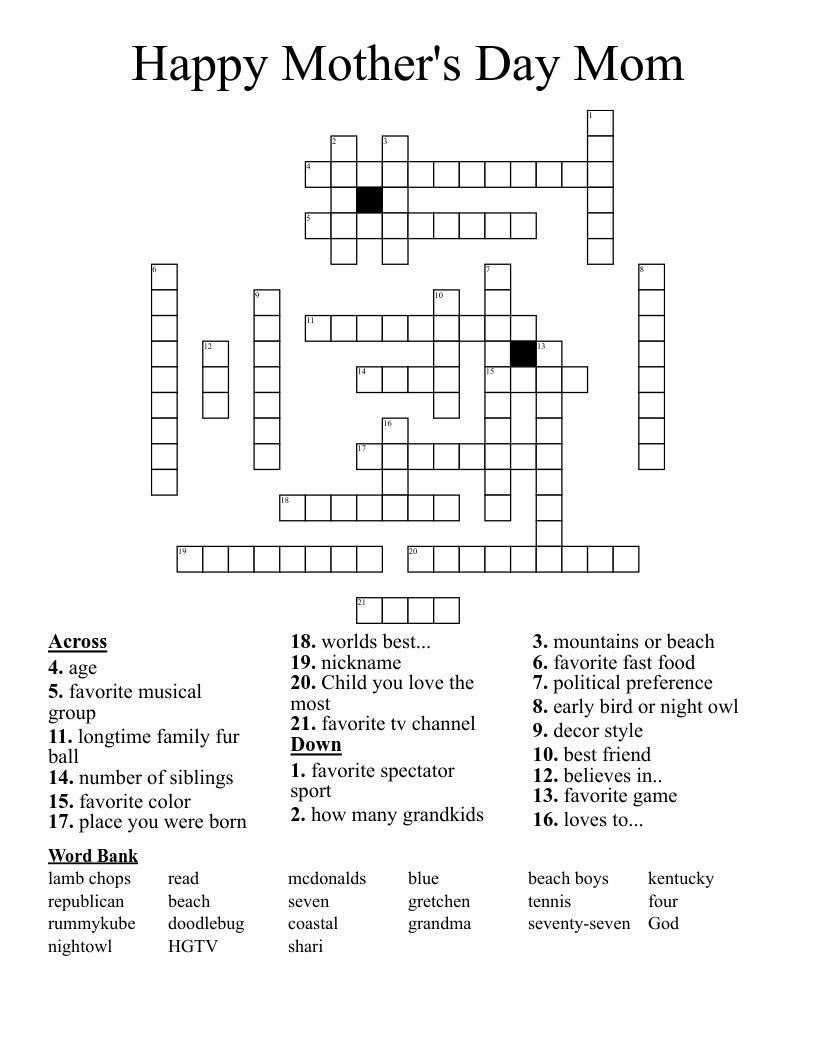 Happy Mother #39 s Day Mom Crossword WordMint