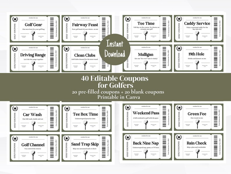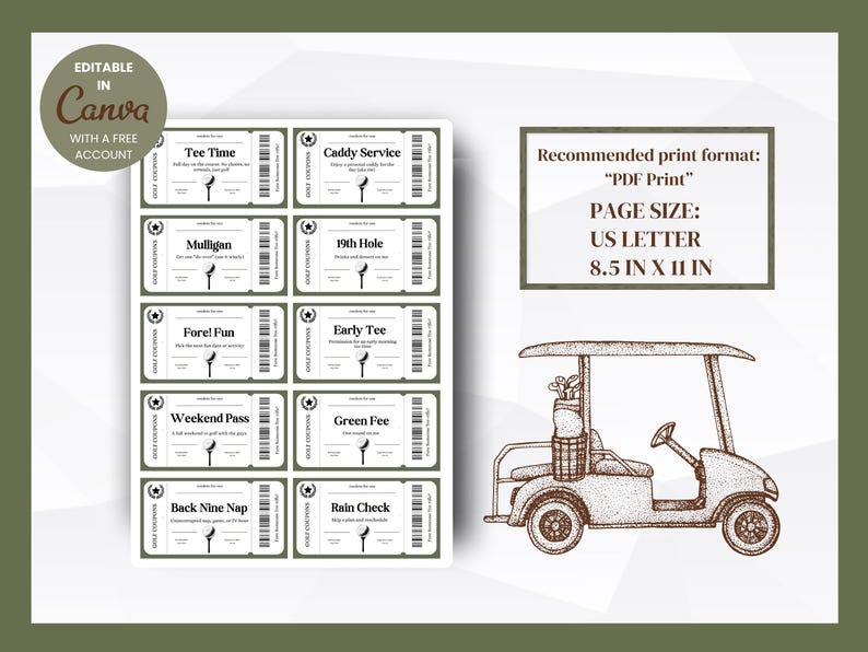 Golf Coupon Book: Editable Golfer Gift (canva Template) Etsy