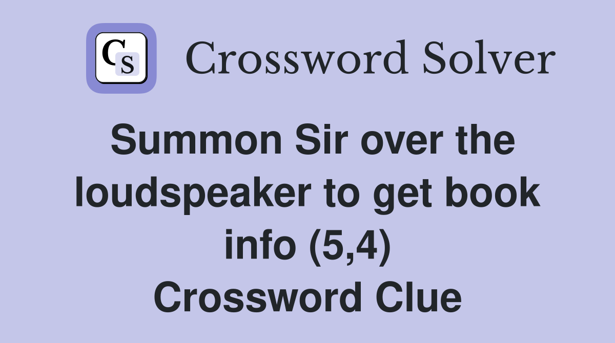 Summon Sir over the loudspeaker to get book info (5 4) Crossword Clue