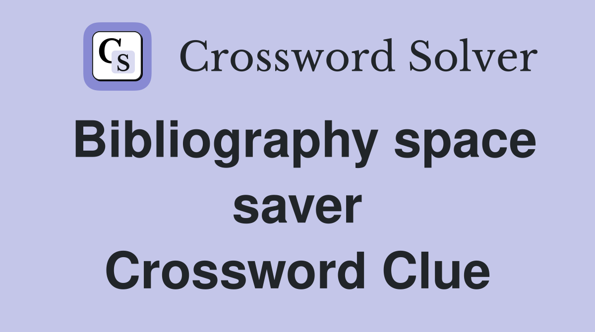 Bibliography space saver Crossword Clue Answers Crossword Solver