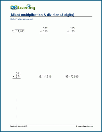 Multi digit Multiplication and Division Worksheets Free