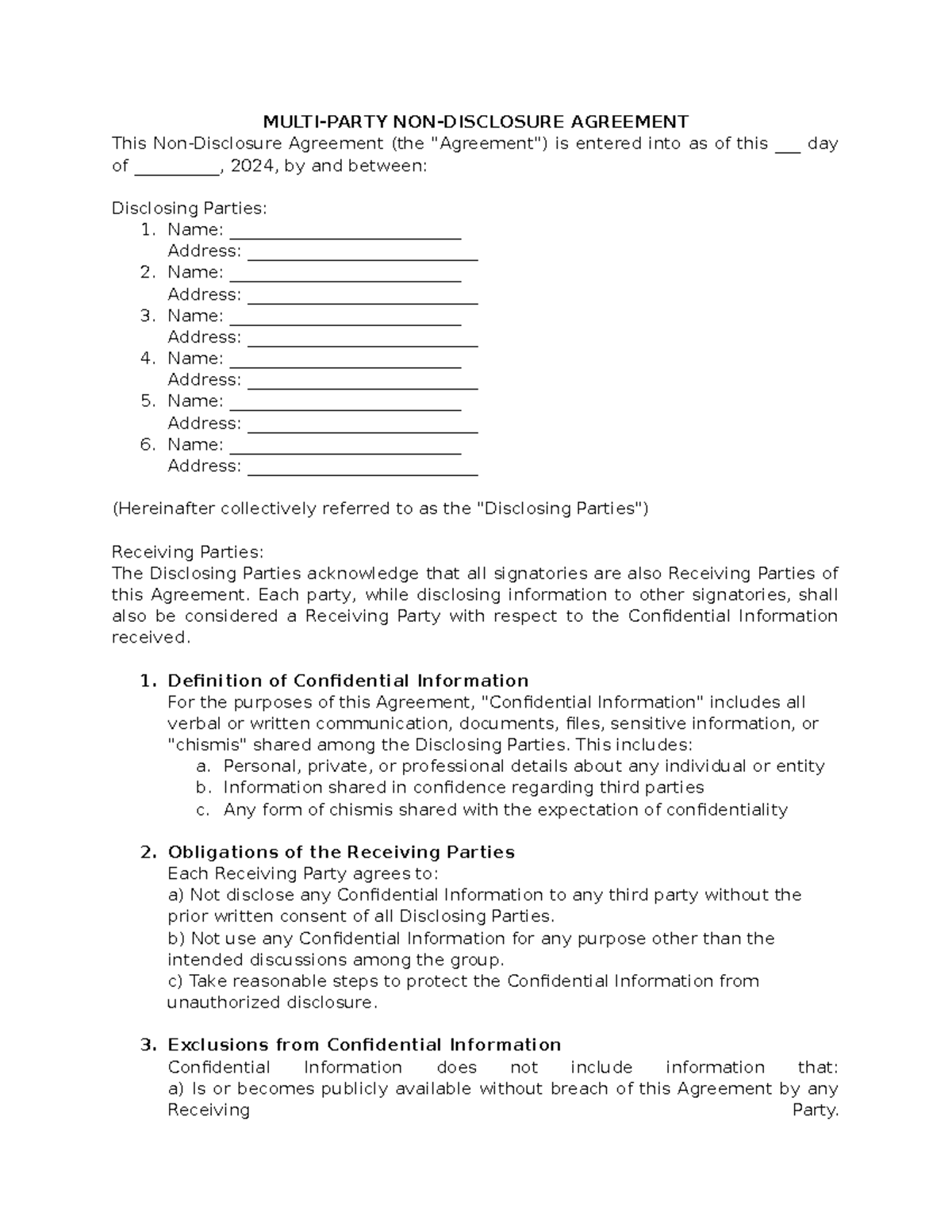 Multi Party Non Disclosure Agreement Template: Fill out sign online