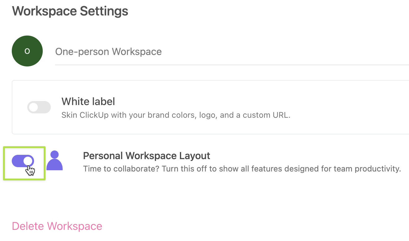 Personal Workspace Layout ClickUp Help