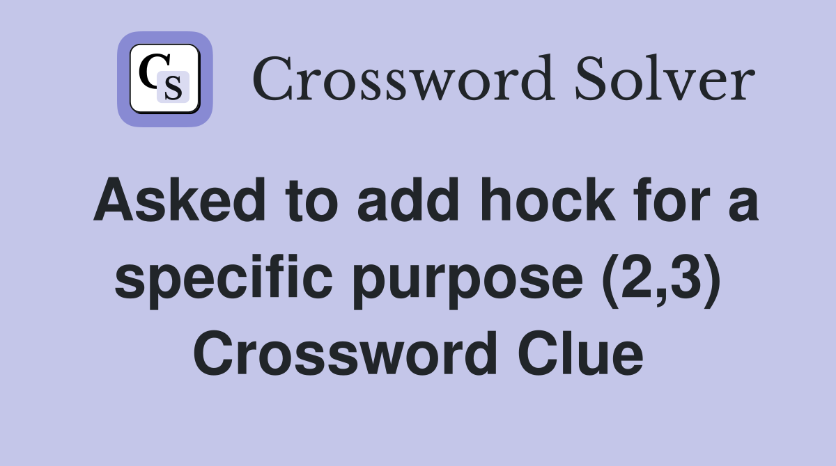 Asked to add hock for a specific purpose (2 3) Crossword Clue Answers