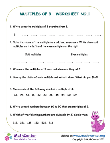 Here are some of the images for Multiples Of 3 Worksheet that we found in our website database.
