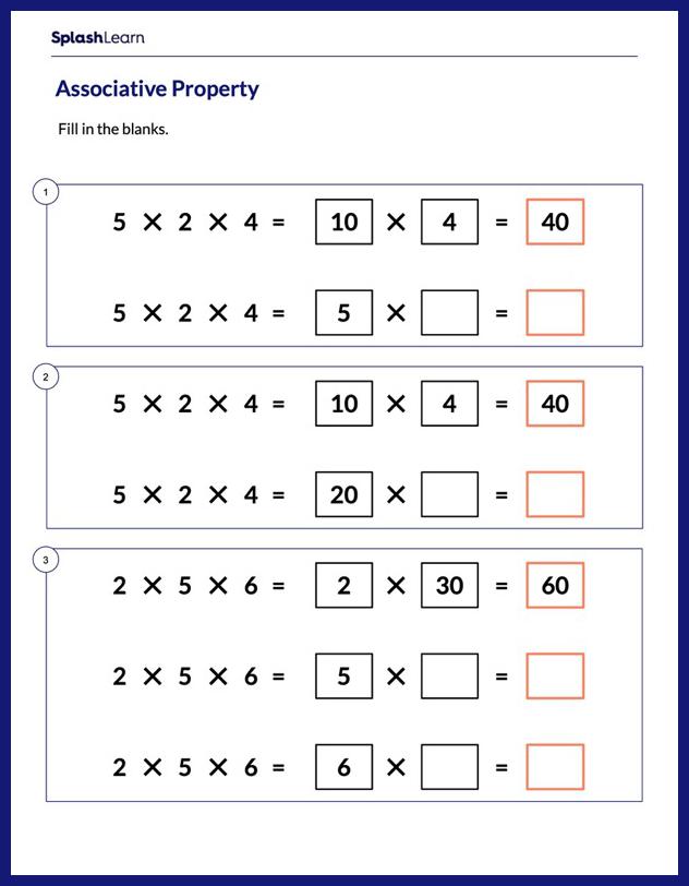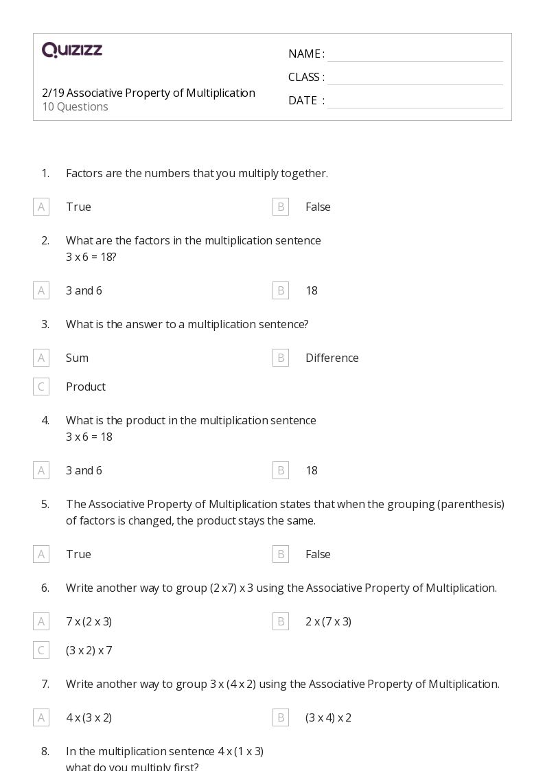 Free associative property of multiplication 3rd grade worksheet