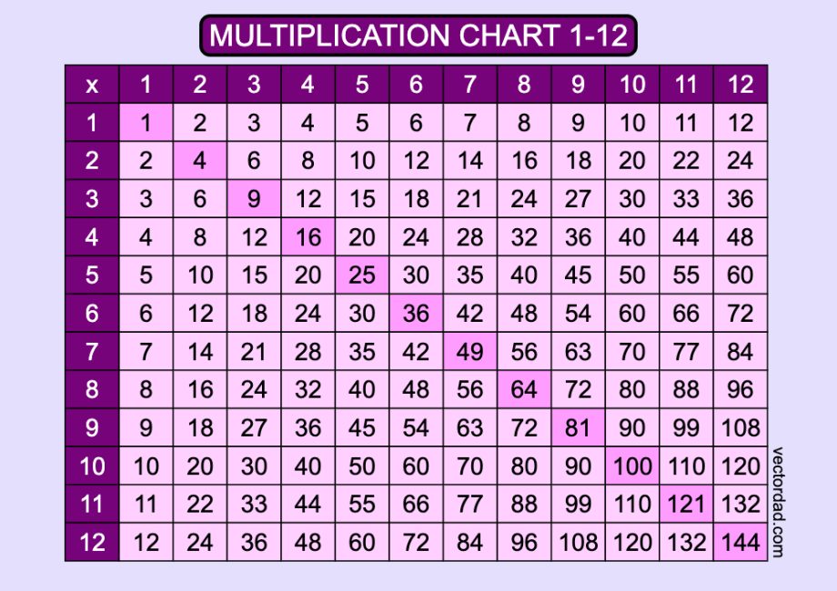 Times Tables Chart 1 12 PDFs Free Math Printables