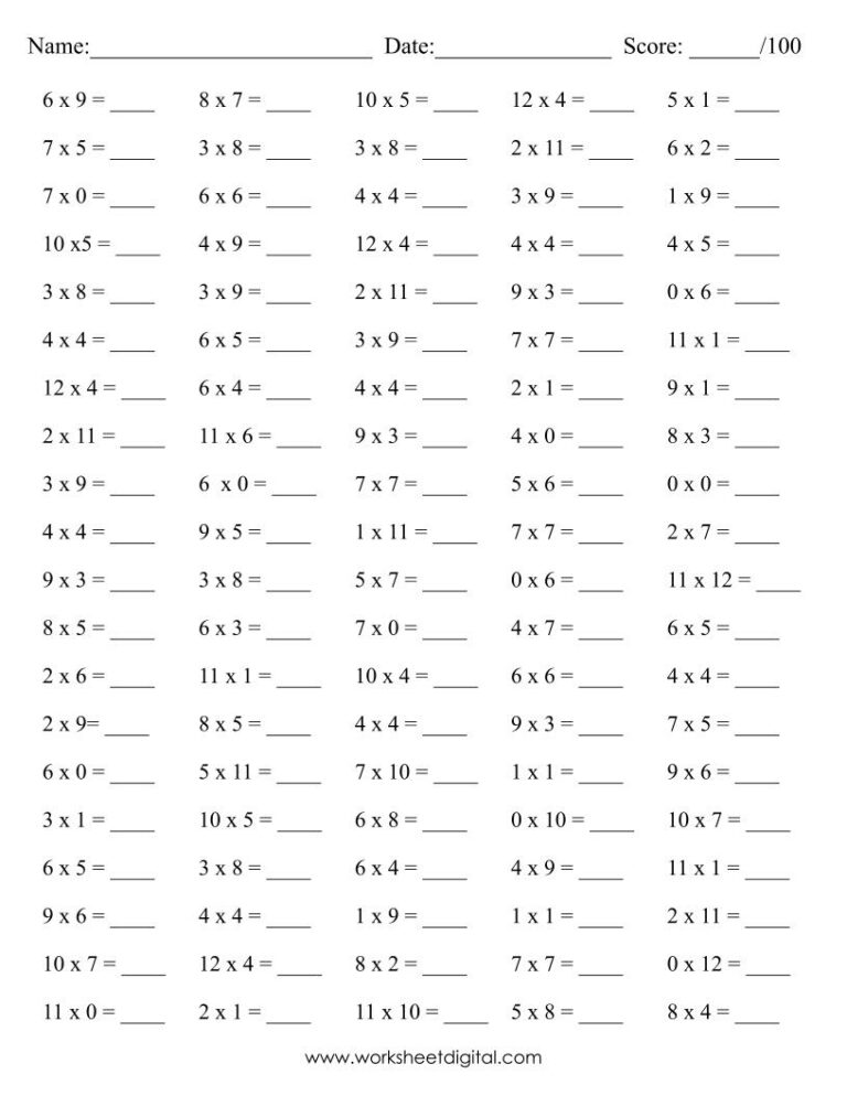 Multiplication Speed Drill Worksheet Improve Your Math Skills Quickly