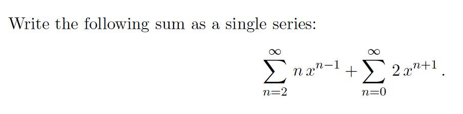 Solved Write the following sum as a single series: Sigma n = Chegg com