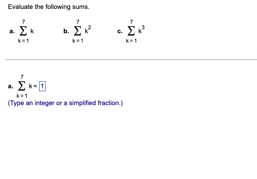Solved ∑k=17k b ∑k=17k2 c ∑k=17k3 ∑k=17k= Chegg com