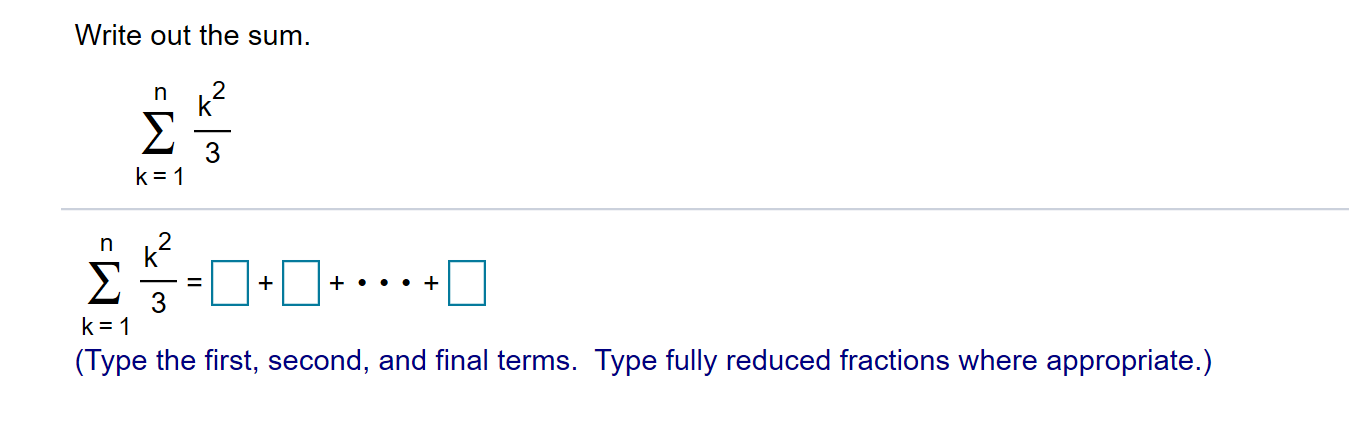 Solved Write out the sum k= 1 n 2 ¿ * = 0 0 0 k= 1 Chegg com
