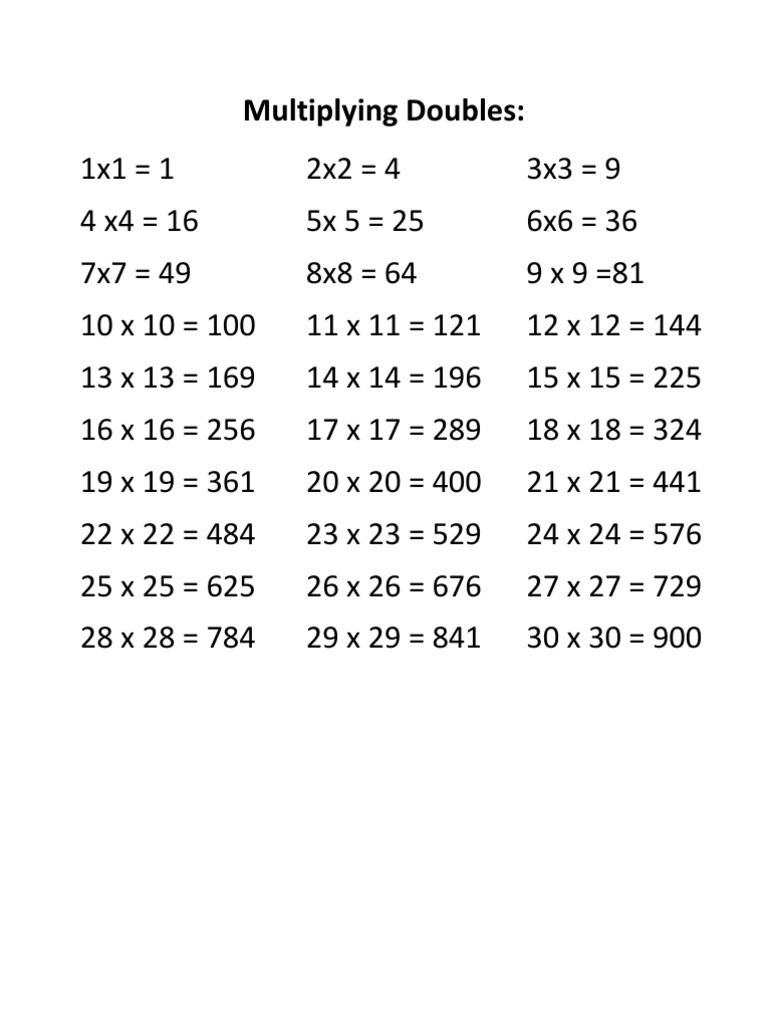 Multiplying Doubles Sheet Multiplication Arithmetic
