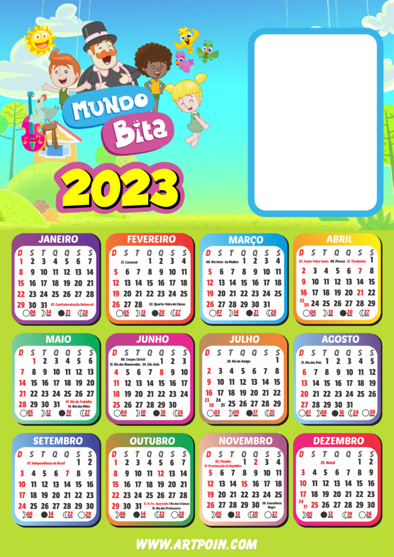 Calendário 2023 mundo bita infantil grátis png