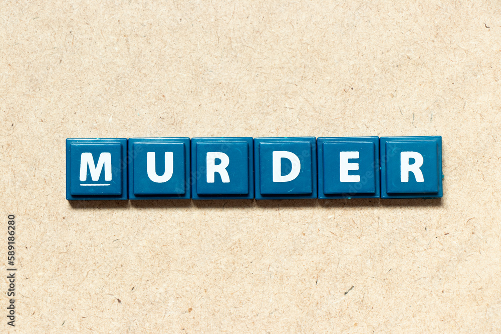 Tile alphabet letter in word murder on wood background Stock Photo