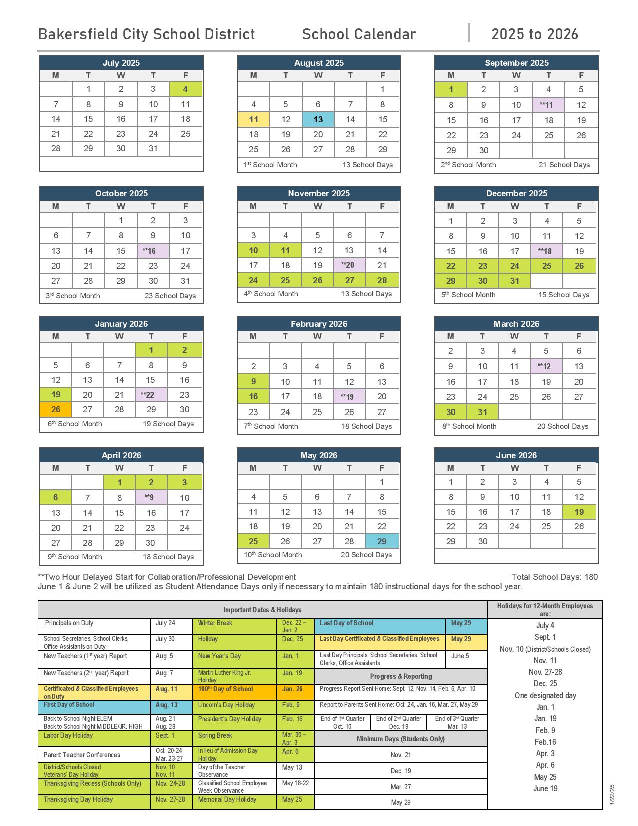 Bakersfield City Schools Calendar 2025 2026 Download