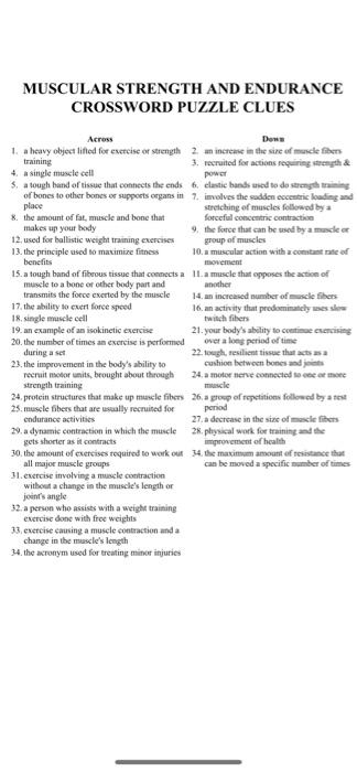 MUSCULAR STRENGTH AND ENDURANCE CROSSWORD PUZZLE Chegg com