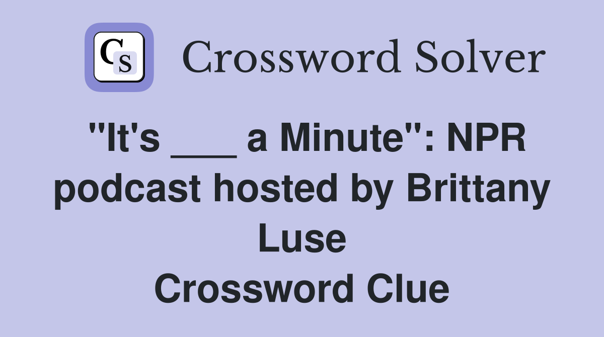 quot It #39 s a Minute quot : NPR podcast hosted by Brittany Luse Crossword