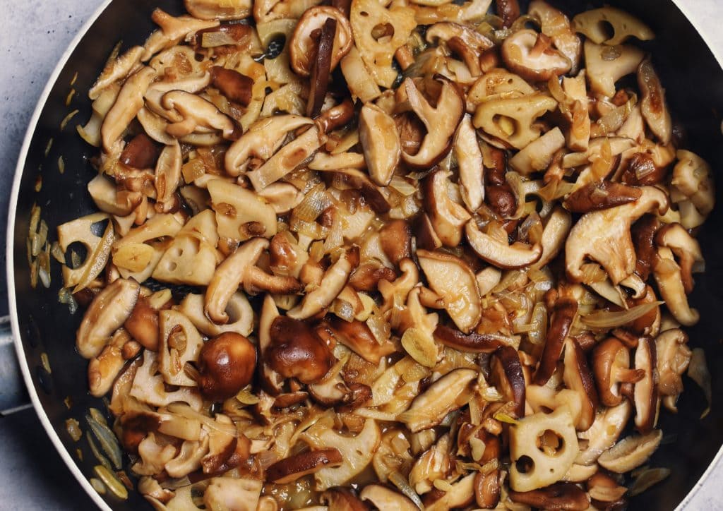 Mushroom Sticky Rice with Lotus Root Vegan Dill and Thyme