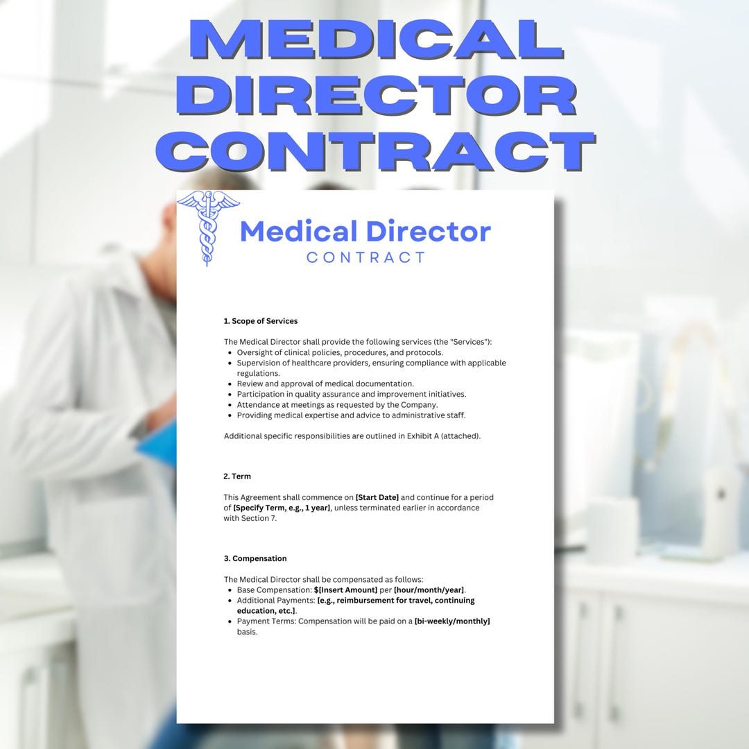 Medical Director Contract Template Editable Professional Medical