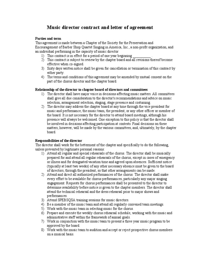 Music Director Contract and Letter of Agreement PDF Fee Choir