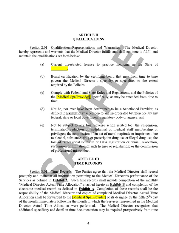 Medical SPA Director Contract Template MedSPA Downloads