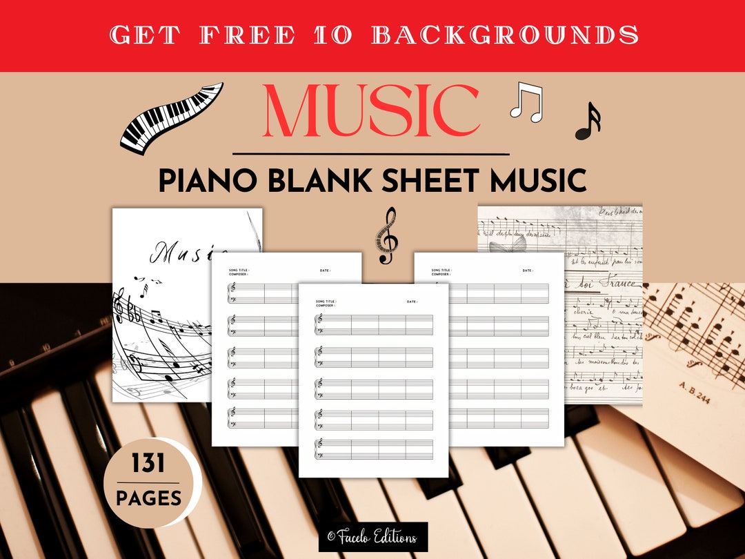 Blank Sheet Music for Piano: Music Manuscript Paper Treble Clef