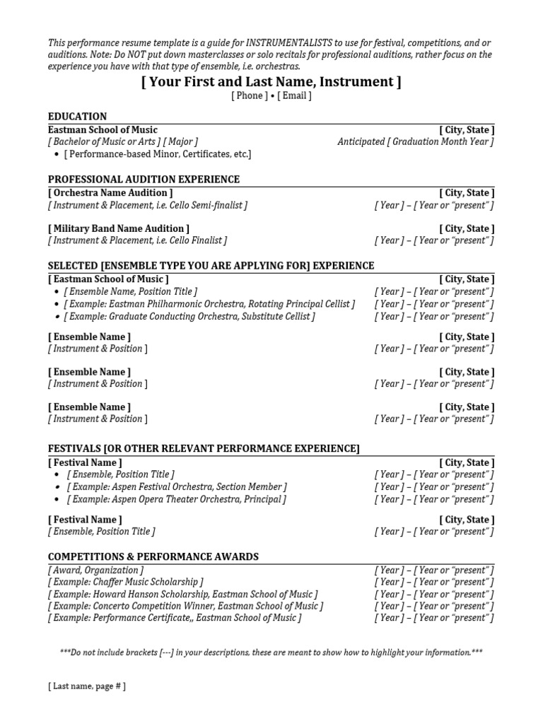 Eastman IML Performance Resume Template 12 5 22 PDF Orchestras