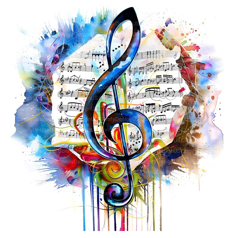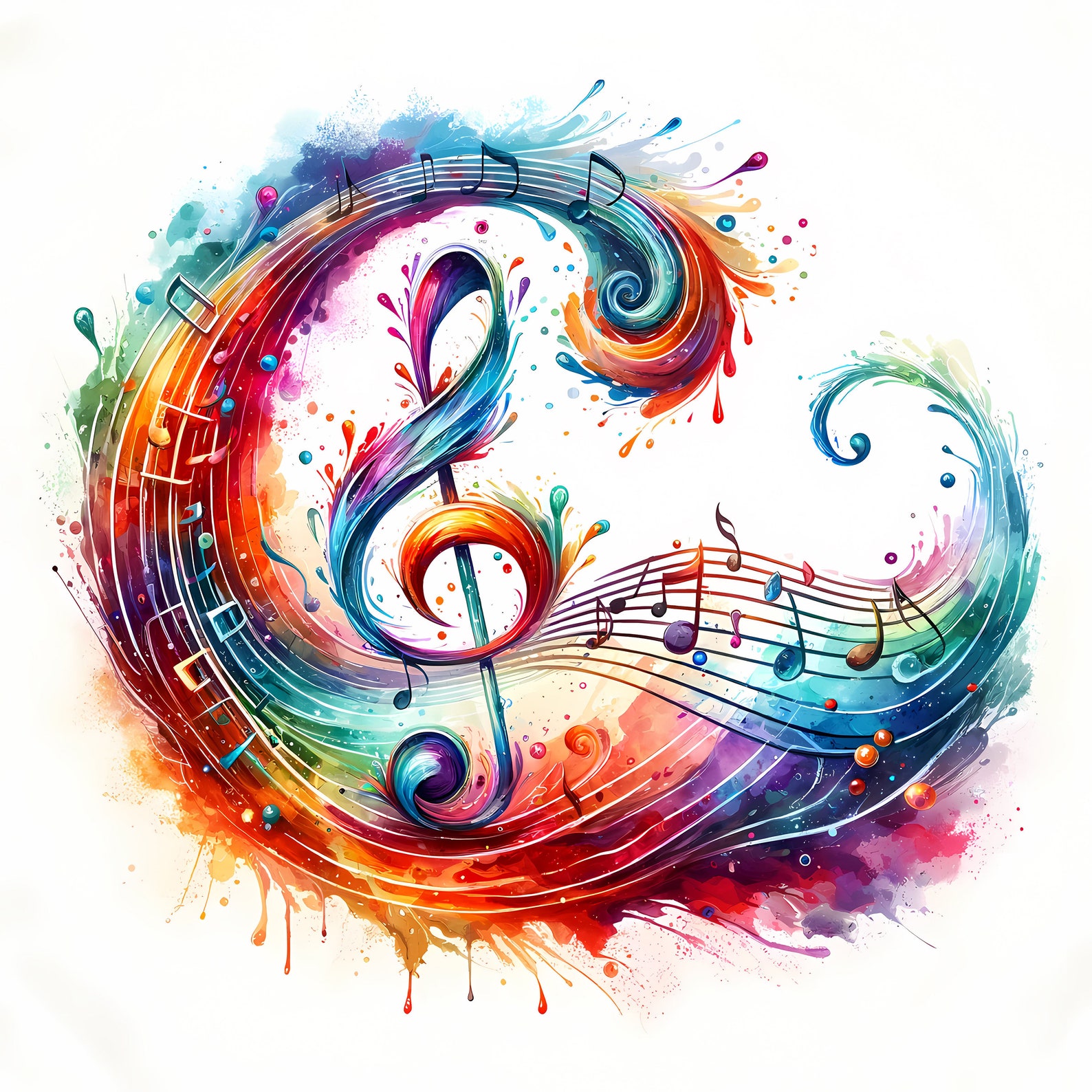 Music Notation Watercolor Clipart PNG 20 Colored Musical Note Instant