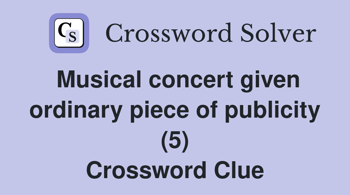 Musical concert given ordinary piece of publicity (5) Crossword Clue