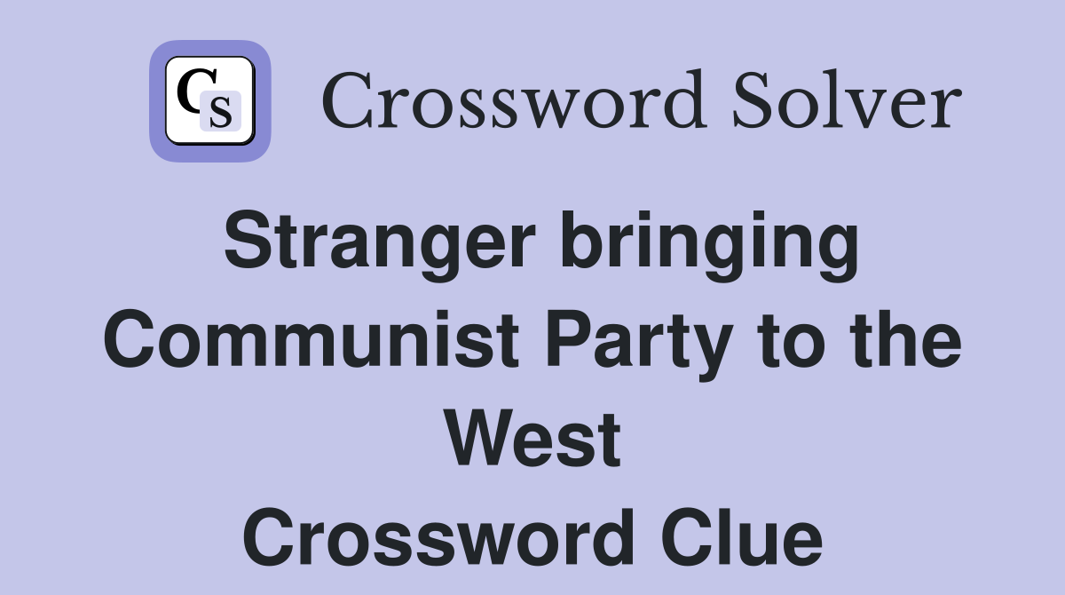 Stranger bringing Communist Party to the West Crossword Clue Answers