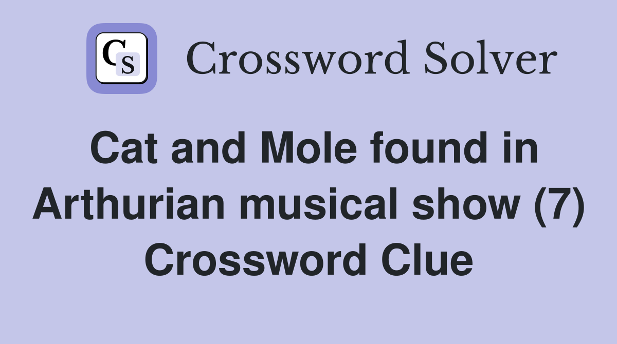 Cat and Mole found in Arthurian musical show (7) Crossword Clue